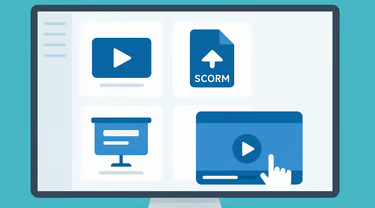 Suporte a vídeos, SCORM, apresentações, PDFs, podcasts, vídeos interativos e mais.