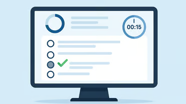 Avaliações com múltipla escolha, verdadeiro/falso, perguntas abertas e controle de tempo, com banco de questões e indicadores de desempenho.